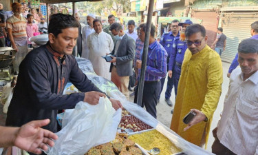 রমজানে নিয়মিত বাজার ও খাদ্যপ্রতিষ্ঠান তদারকির অংশ হিসেবে শরীয়তপুরের নড়িয়া উপজেলার ডিঙ্গামানিক ইউনিয়নের গোলার বাজারে সমন্বিত অভিযানে সাতটি প্রতিষ্ঠানকে মোট ৩৩ হাজার টাকা জরিমানা করা হয়েছে। গতকাল সোমবার দুপুর ১২টার দিকে অভিযান পরিচালনা করে বাংলাদেশ নিরাপদ খাদ্য কর্তৃপক্ষ ও জাতীয় ভোক্তা অধিকার সংরক্ষণ অধিদপ্তর, শরীয়তপুর। এতে অংশ নেয় র্যাব-৮ মাদারীপুর ক্যাম্পের একটি দল। অভিযান সূত্রে জানা গেছে, সোমবার নড়িয়ার গোলার বাজারে অভিযানকালে ছয়টি দোকান থেকে মোট ২৩ হাজার টাকা জরিমানা আদায় করা হয়। এ ছাড়া বাজারসংলগ্ন সরদার বেকারিতে খাদ্যদ্রব্যে নিষিদ্ধ হাইড্রোজ, টেক্সটাইল ডাই ও অনুমোদনহীন কেমিক্যাল পাওয়া যায় এবং প্রতিষ্ঠানটির যথাযথ কর্তৃপক্ষের কোনো নিবন্ধন ছিল না। এ কারণে বেকারিটির মালিককে মোট ১০ হাজার টাকা জরিমানা করা হয়। জেলা নিরাপদ খাদ্য কর্মকর্তা সুব্রত ভট্টাচার্য্য বলেন, বেকারি, মিষ্টি ও ফলের দোকানে বিভিন্ন অসংগতি পাওয়ায় আইন অনুযায়ী জরিমানা করা হয়েছে।