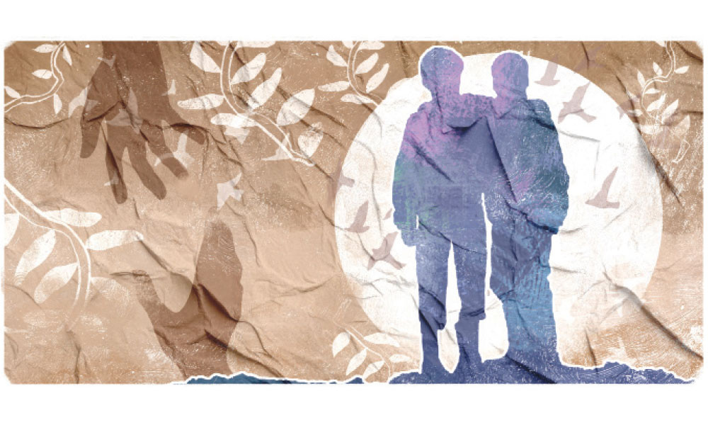 কাছিমের পিঠে ভর করে ওদের সময় ধীরলয়ে শৈশব থেকে কৈশোরে ফেরে। মতিন ও সুনীলের বয়সের ফারাক মাত্র চার মাস উনিশ দিনের। হিজলতলা গাঁয়ের প্রাইমারি স্কুল বাড়ি থেকে মাইলখানেকের হাঁটাপথ। দুই জোড়া ক্ষুদ্র পায়ে অতটুকু পথ পেরোতে সূর্য আসমানের মধ্যিখানে চলে আসত, তার পরও সব দিন স্কুলে যাওয়া হতো, তা কিন্তু নয়! মতিন ছোটবেলা থেকেই ছিল বয়সের তুল্যে বেশ আঁটসাঁট, শক্ত-সমর্থ, তবে একটু বেশিই যেন চপল। সুনীল ছিল তার উল্টো—বারোমেসে পীড়িত। নির্দিষ্ট সময়ের মাসখানেক আগে জন্ম নেওয়া সুনীলের সূতিকাগার থেকেই শরীর-মনে জোর ছিল বড্ড স্তিমিত। তবে মতিনের এক জোড়া নির্ভরতার হাত সুনীলের জন্য আগ বাড়িয়ে থাকত বলেই তার জীবনটা হয়ে ওঠে শরতের নির্মেঘ আকাশের মতো নির্ঝঞ্ঝাট। এত ভালোবাসা পিঠাপিঠি ভাইয়ে ভাইয়েও সহজে মেলা ভার।