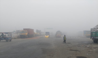 কুড়িগ্রামে ঘন কুয়াশার সঙ্গে বইছে হাড় কাঁপানো ঠাণ্ডা বাতাস