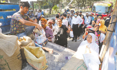টিসিবির ট্রাকের সামনে মানুষের দীর্ঘ লাইন