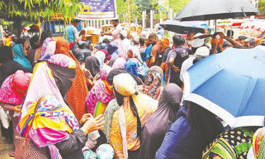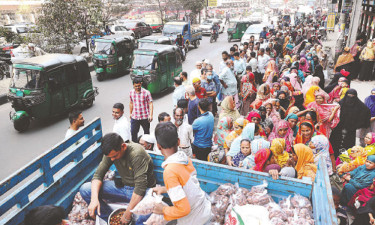 টিসিবির ট্রাকের সামনে মানুষের দীর্ঘ লাইন